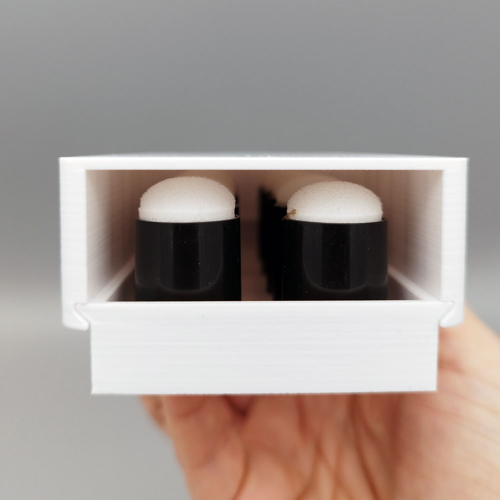 Der er plads til 10 dabbere, men en æske til 20 er også på trapperne. Disse dabbere fylder mindre end blendings tools og med denne æske har du styr på dem og de er godt beskyttet.