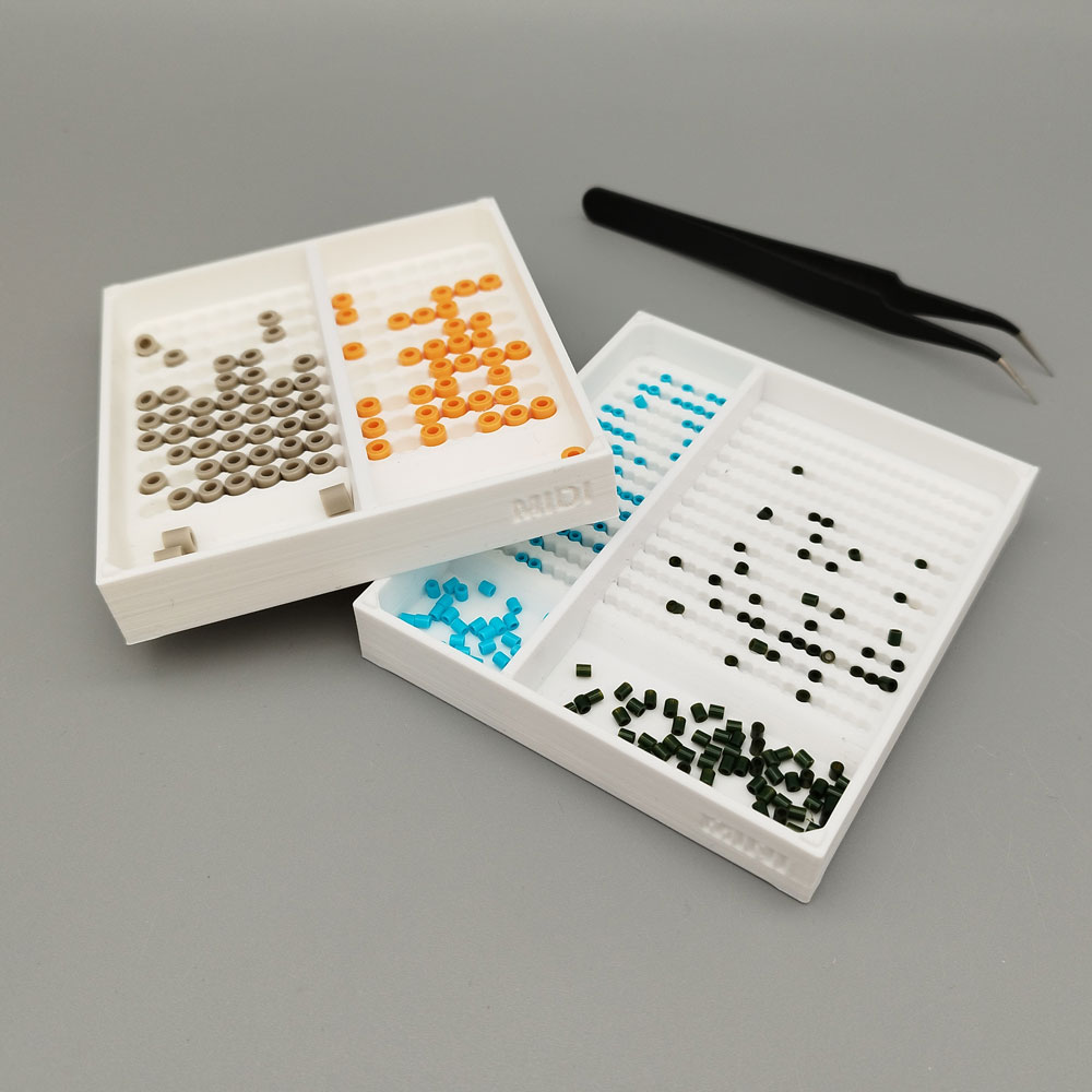 Mine perlebakke-inddelere vil blive printet i hvid PETG, medmindre andet aftales inden køb. Hvid gør det nemt at se farverne på perlerne.