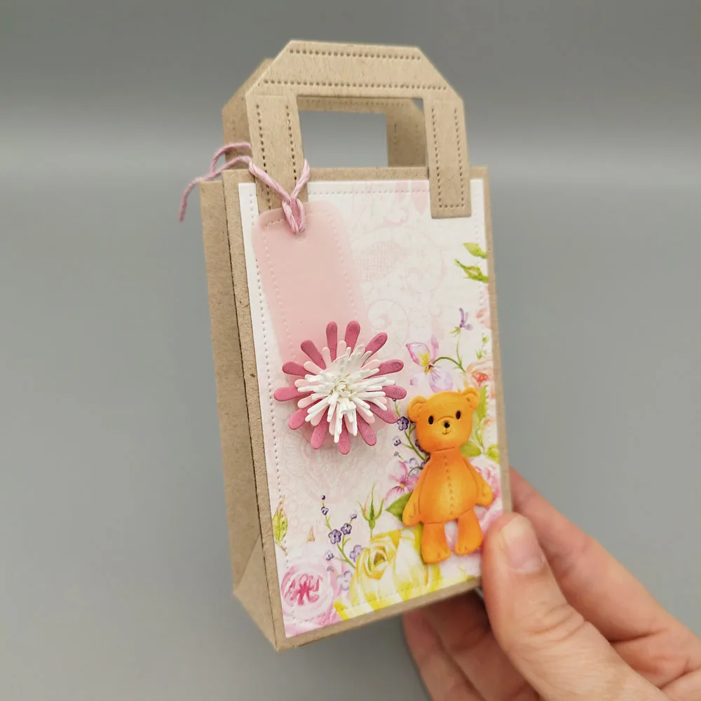 Jeg har designet hjælperen med et indbygget håndtag, så den kan trækkes op og ud, når posen er samlet. Når posen er samlet og klodsen er trukket ud, kan du bukke siderne ind og lave det falsede indhak.