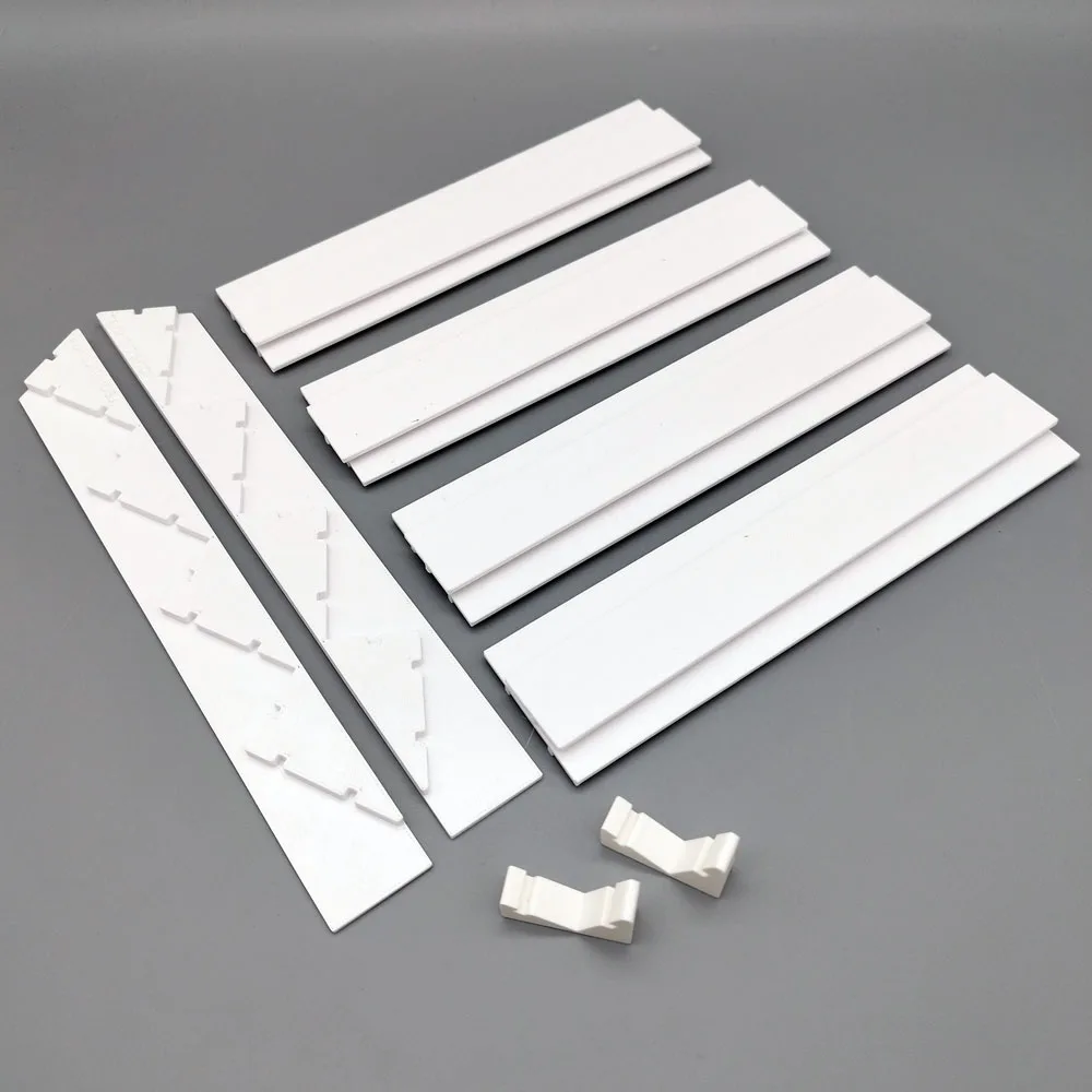 De printes i hvid PETG medmindre andet er aftalt på forhånd. Det gør dem mere robuste til hverdagsbrug.
